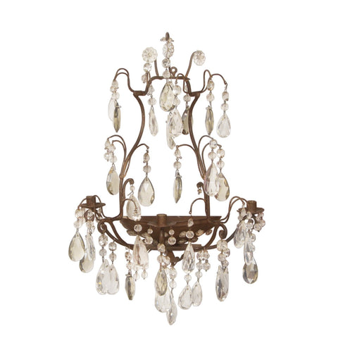 Pair of Antique Maison Baguès Wrought Iron with Crystal Flower Sconces C1920s Sale