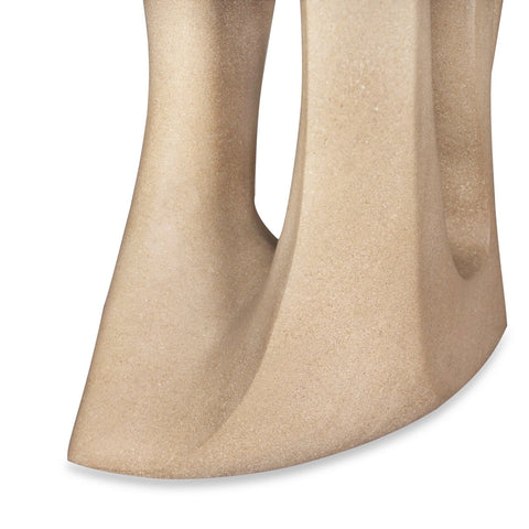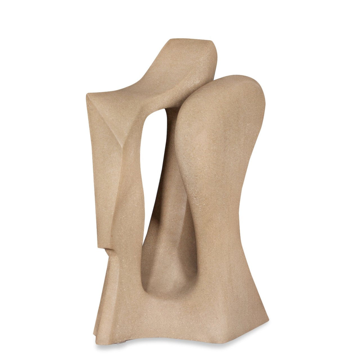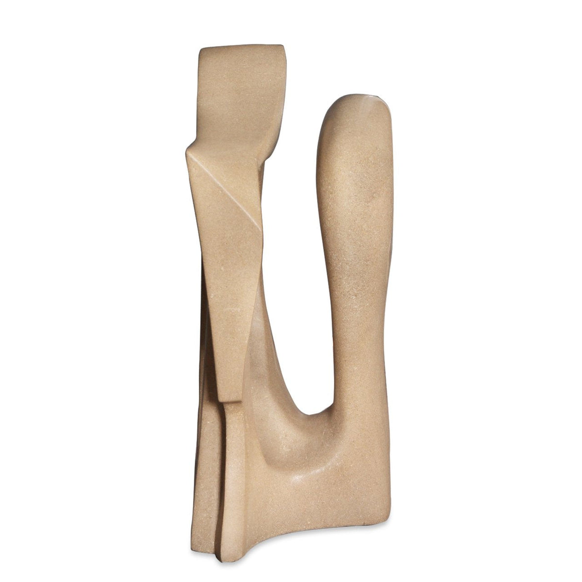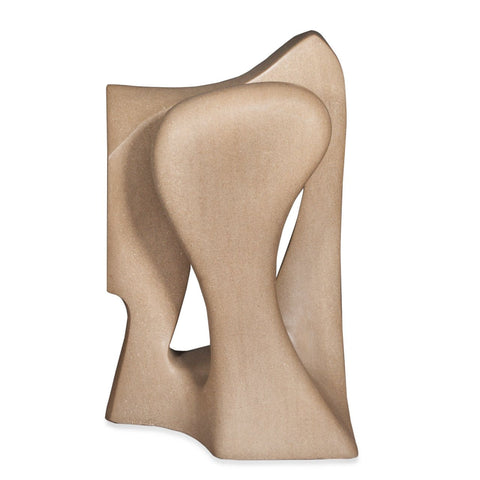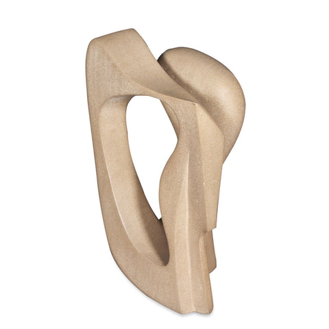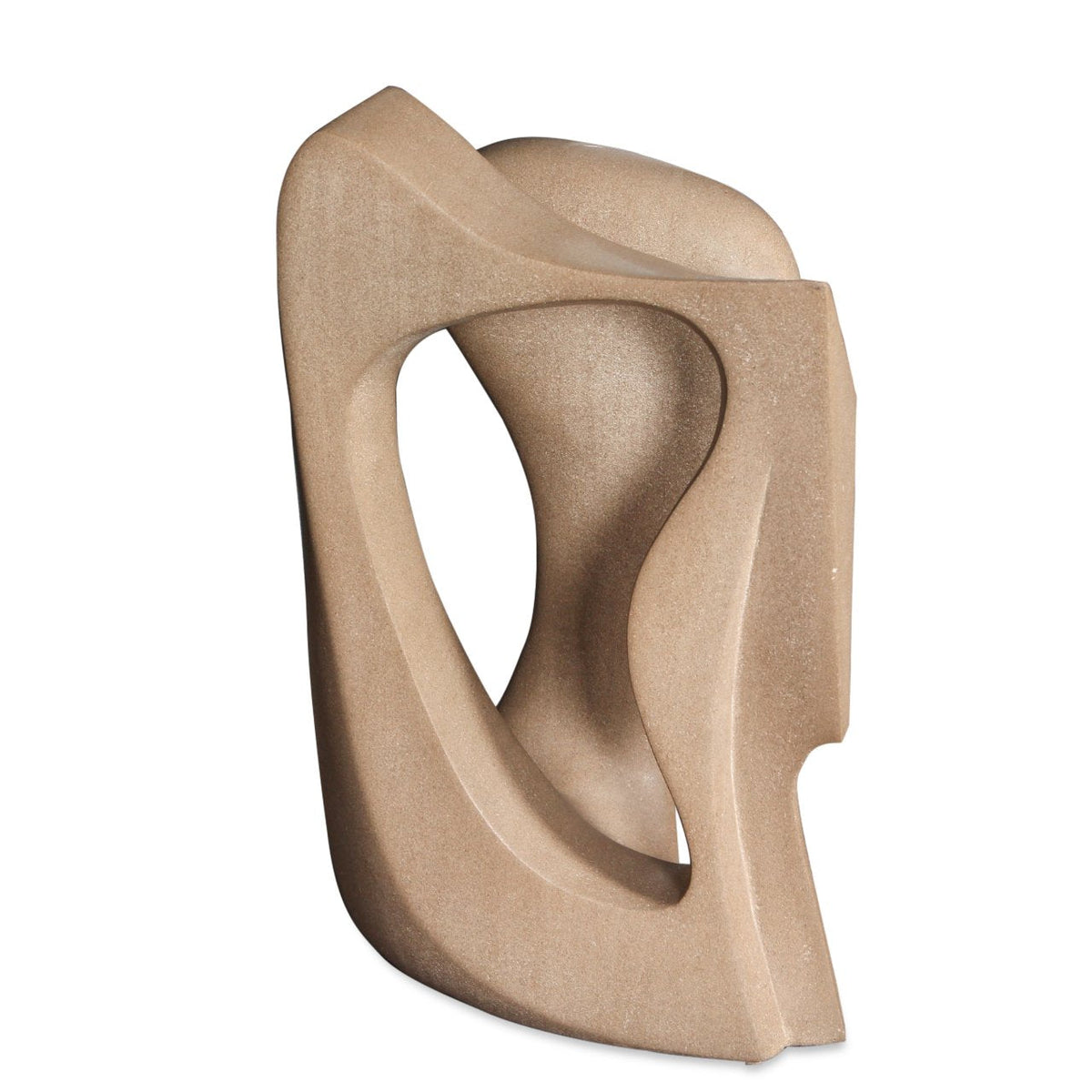This hand-carved marble abstract sculpture has a fluid yet still form. The piece showcases a balanced form reflecting and complementing itself on either side. An elegant yet expressive piece that will enhance your contemporary décor with its smooth and gorgeous earthy look.