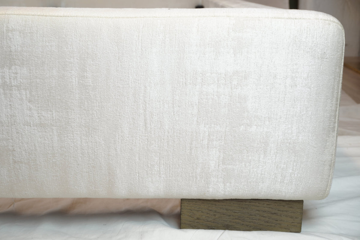 Restoration Hardware Modena Queen Size Platform Bed embodies modern luxury through its refined simplicity and superior craftsmanship. Upholstered in a soft, high-quality performance fabric, this platform bed features clean lines, low-profile proportions, and subtle texture that complement a wide range of interiors. The streamlined silhouette rests on sturdy block wood feet, offering both stability and understated elegance. Designed by Restoration Hardware to blend timeless style with everyday comfort, the Modena Bed serves as a versatile centerpiece for contemporary or minimalist bedrooms. Ideal for designers and homeowners seeking enduring quality and modern sophistication.