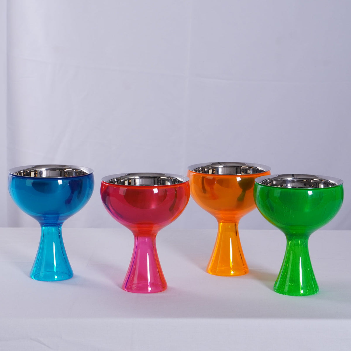 The Alessi Big Love Ice Cream Bowl set by designer Miriam Mirri brings a playful, modern spirit to everyday indulgence, pairing polished stainless steel interiors with vibrant, transparent thermoplastic stems in four lively colors. Thoughtfully shaped for generous servings, each bowl balances sculptural presence with practical durability, making them ideal for both casual desserts and elevated table settings. This set of four adds a joyful pop of color to any kitchen or dining space, offering a collectible Alessi classic that celebrates contemporary Italian design with warmth and whimsy.