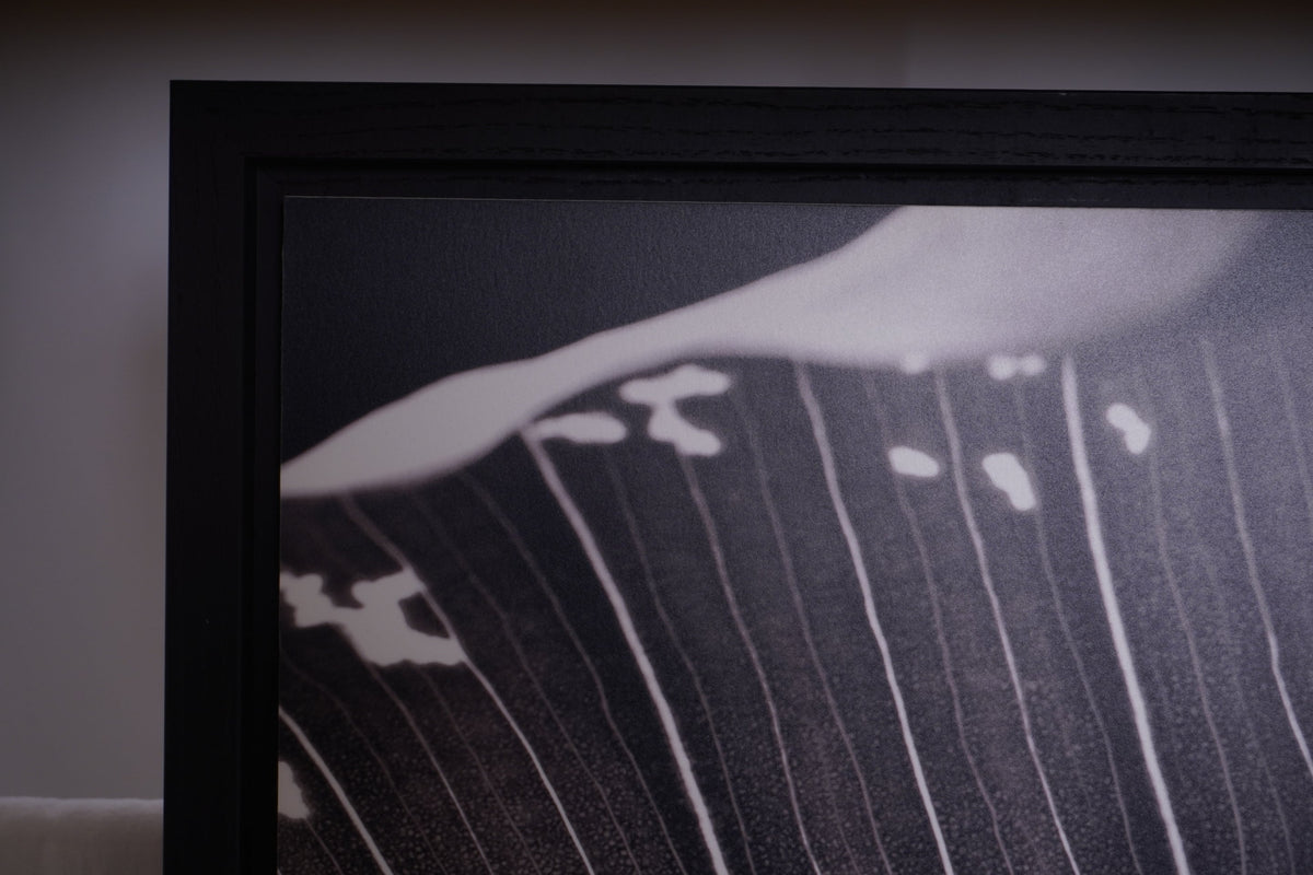 The PIETRO DE FILIPPI Leaves Photograph brings a refined, modern calm to any space with its close up study of a sculptural leaf rendered in soft monochrome tones. Set within a slim black frame, the artwork highlights elegant natural veining and organic texture, creating a quietly dramatic focal point that pairs seamlessly with contemporary, minimalist, or nature inspired interiors. Thoughtfully composed and printed with crisp detail, this piece offers an elevated way to introduce botanical imagery while keeping the aesthetic clean, architectural, and timeless, an ideal wall art accent for living rooms, bedrooms, or curated gallery walls.