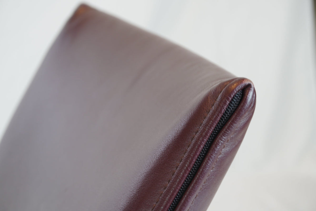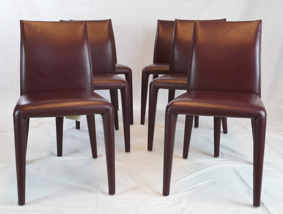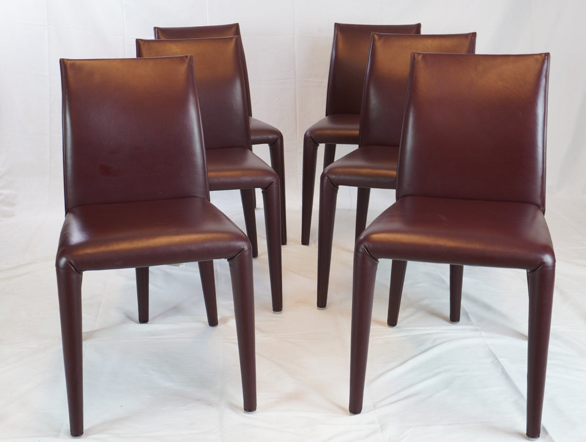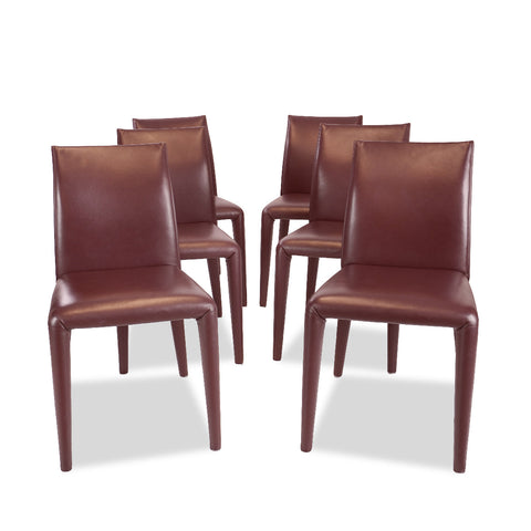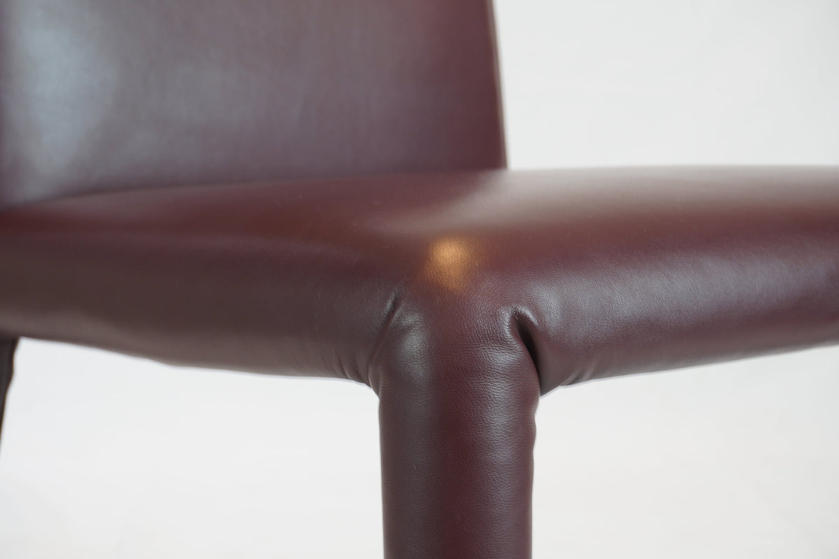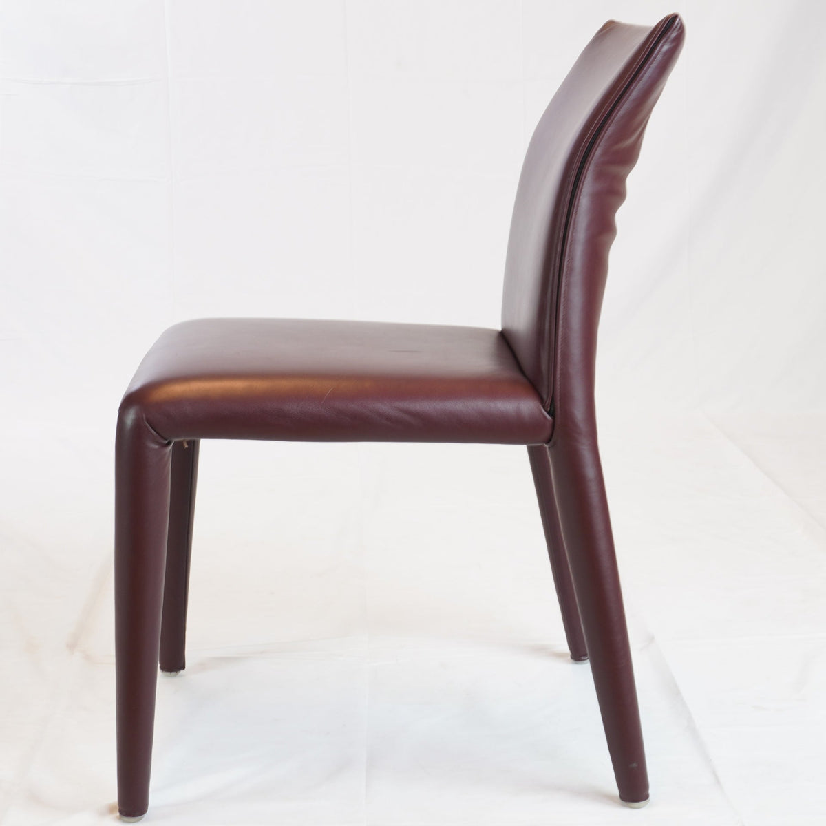 Designed by Mario Bellini for B&B Italia, this set of six Vol au Vent chairs blends sculptural elegance with everyday comfort. Upholstered in rich burgundy leather, each chair features a fully padded silhouette including the legs, for a seamless, tailored look that’s both modern and inviting. The ergonomic form and refined proportions make them ideal for long dining sessions or conference seating. Crafted in Italy with B&B Italia’s renowned quality, this set offers timeless appeal and durability; a sophisticated designer choice for elevating any dining or meeting space.