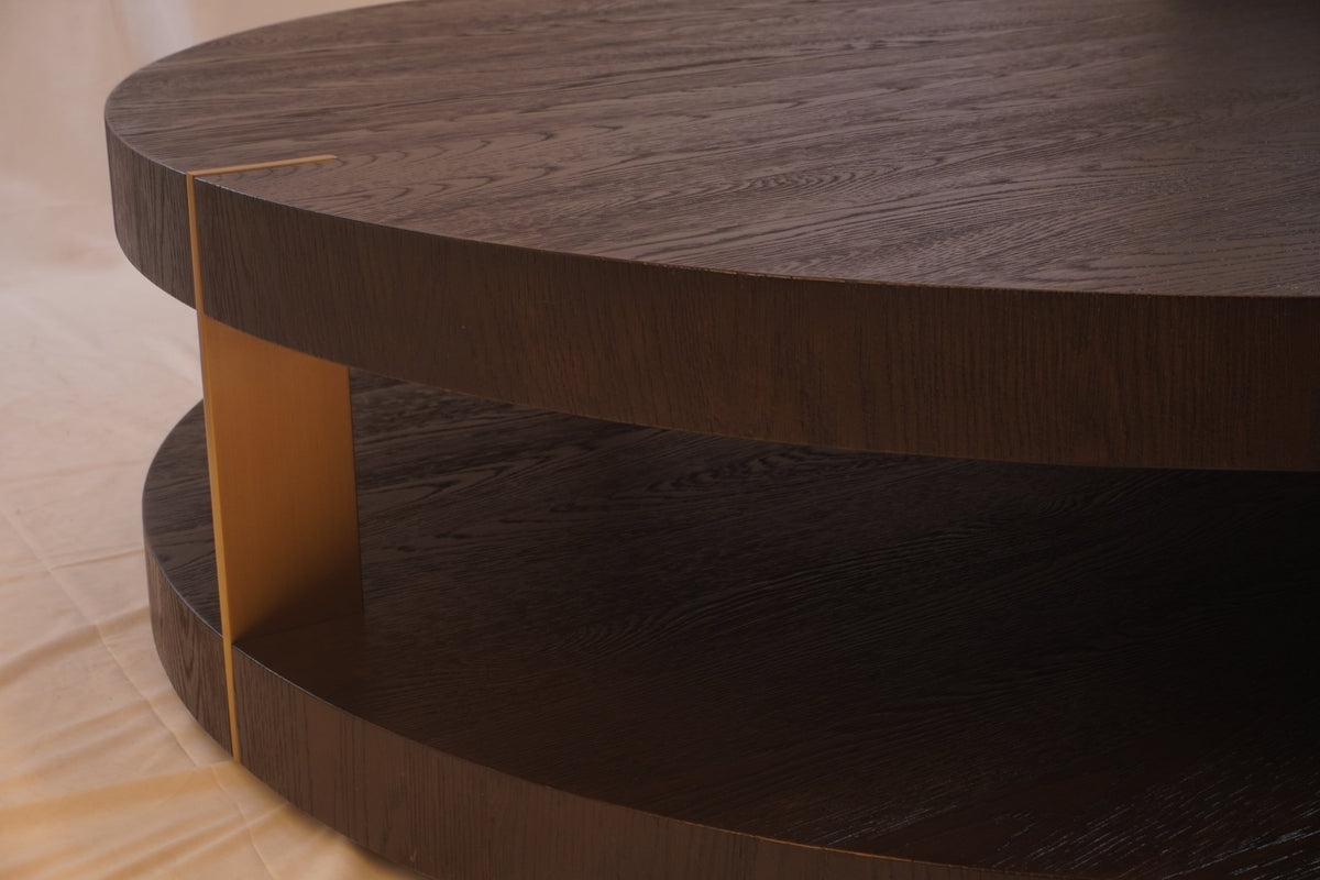 The Verrazano Round Coffee Table by RH features a bold, architectural presence, defined by its sculptural circular form and expertly crafted hardwood construction. The table’s smooth, rounded profile and substantial silhouette highlight RH’s commitment to refined materials and timeless design, while the balanced proportions create a grounded focal point for living rooms or lounge spaces. Both functional and visually striking, the Verrazano brings warmth, texture, and modern sophistication to any curated interior, making it a versatile anchor piece for contemporary and transitional settings alike.
