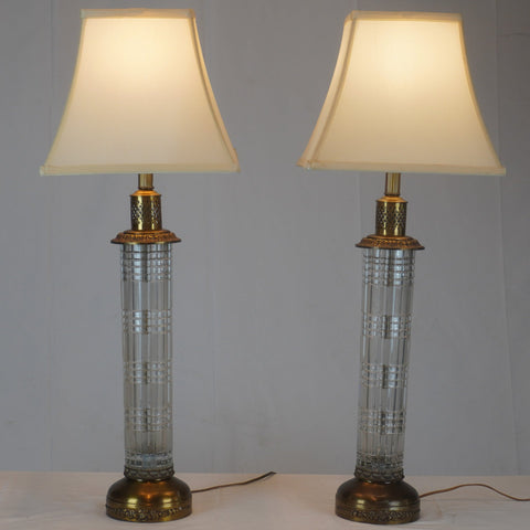 Vintage Fine Crystal and Brass Table Lamps, Pair of Sale
