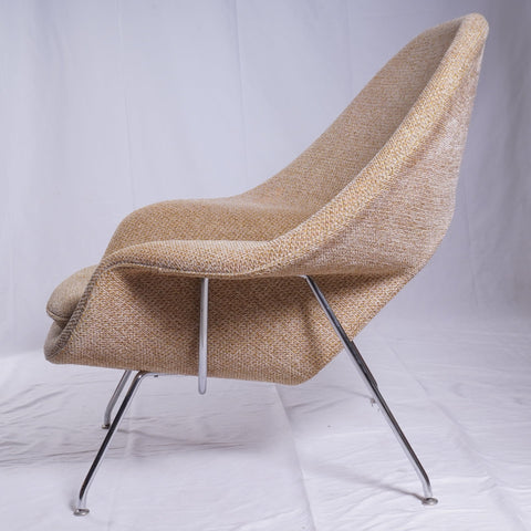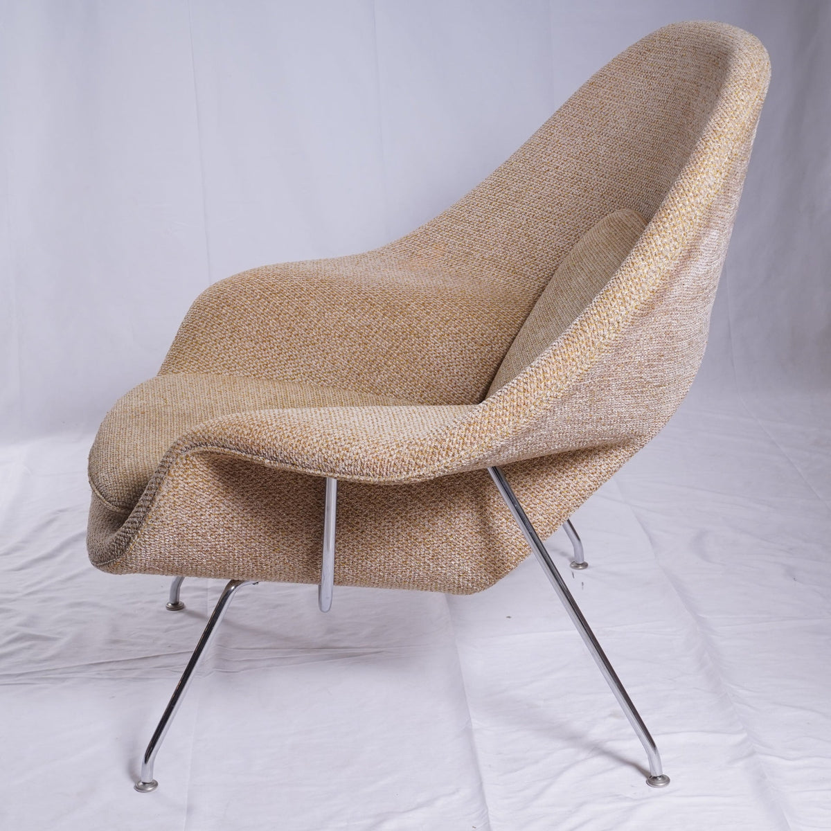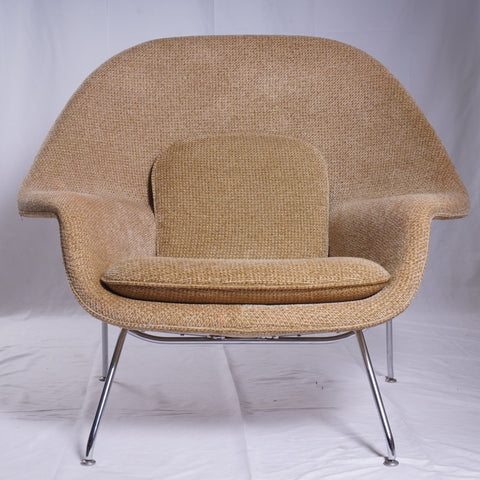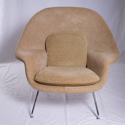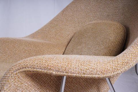 Designed in the late 1940s by Eero Saarinen for Knoll, the Womb Chair is a timeless icon of mid-century modern design. Its enveloping fiberglass shell, cushioned with layered foam and upholstered in a textured neutral fabric, offers the ultimate in comfort and form. Supported by a polished chrome steel base, the chair embodies Saarinen’s vision of creating a seat that allows one to relax in multiple positions while feeling completely supported. Sculptural yet inviting, this piece remains one of Knoll’s most celebrated designs, an enduring symbol of innovation, craftsmanship, and modern elegance.