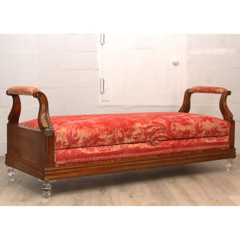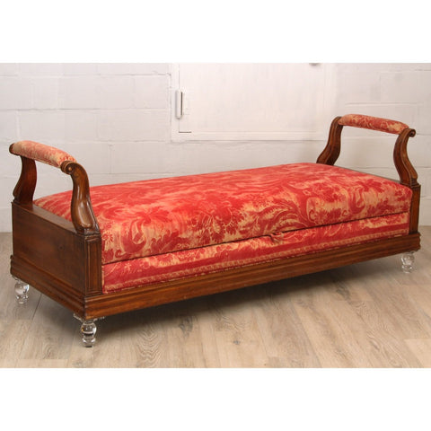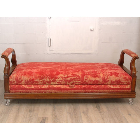Indulge your penchant for exquisite antiquity with our Antique Louis Philippe Walnut Window Bench, a captivating piece steeped in 19th-century allure. Adorned with luxurious Fortuny upholstery, this bench exudes opulence and sophistication, perfectly complementing the discerning tastes of designers and decorators alike. Its walnut frame boasts timeless elegance, while the addition of sleek Lucite legs lends a contemporary twist, making it a versatile addition to any curated interior. Embrace the fusion of historical charm and modern sensibility with this statement bench, poised to elevate the aesthetic of prestigious spaces and evoke admiration from discerning eyes.