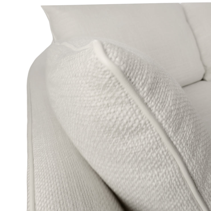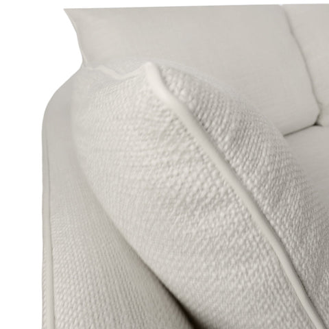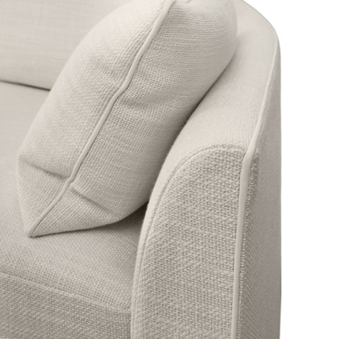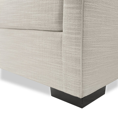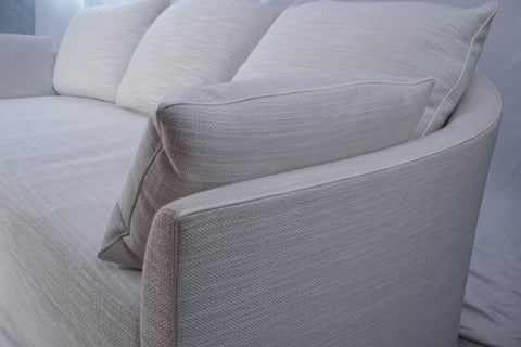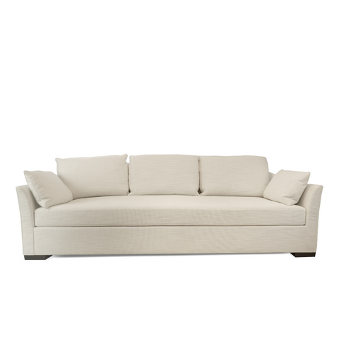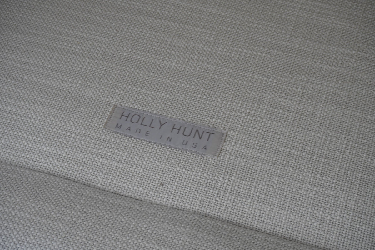 The Holly Hunt Champagne Villa Sofa offers refined comfort with its tailored silhouette, textured woven upholstery in a soft champagne tone, and generous bench-style seat cushion. Designed with down-wrapped high-resilience foam for lasting support and plush comfort, it includes matching down-filled back pillows for a relaxed yet structured look. A kiln-dried maple frame ensures strength and durability, while the low-profile walnut base adds a grounding touch of sophistication. Perfectly balancing modern elegance and timeless craftsmanship, this sofa is designed to anchor any interior with understated luxury.