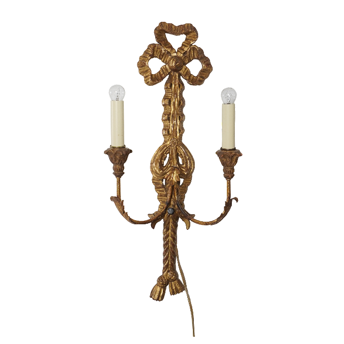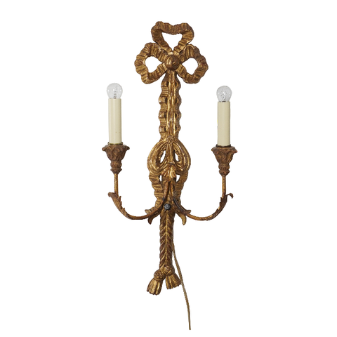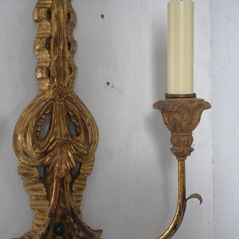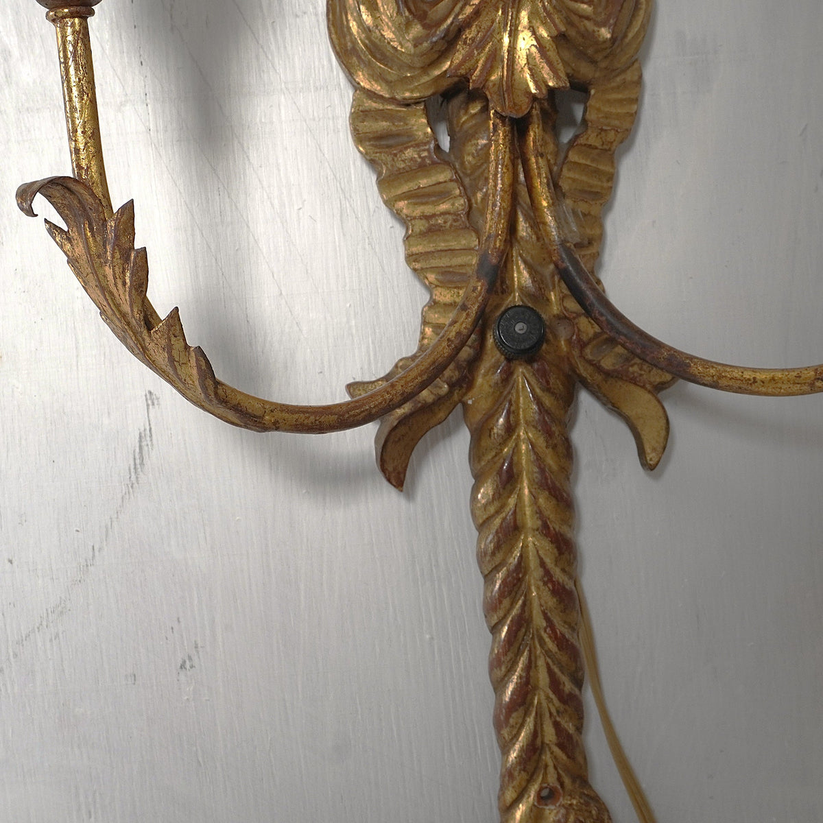 Vintage Italian Carved Gilt Wood & Metal Wall Sconces Sale