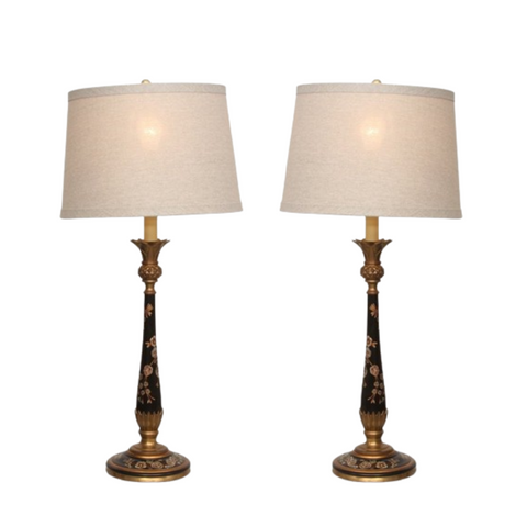 Exuding timeless charm and artisanal elegance, this Pair of Vintage Floral Tole Candlestick Buffet Hand painted Lamps is a must-have addition for discerning designers and decorators alike. Crafted with meticulous attention to detail, each lamp features intricate hand-painted floral motifs on a classic tole candlestick design, evoking a sense of vintage sophistication and refined taste. Perfect for adding a touch of whimsy and character to any interior space, these lamps serve as both functional lighting fixtures and exquisite decorative accents. Whether adorning a buffet table, illuminating a cozy reading nook, or gracing a bedside table, these vintage treasures effortlessly infuse any room with warmth, personality, and timeless style, making them coveted pieces for the most discerning clientele.